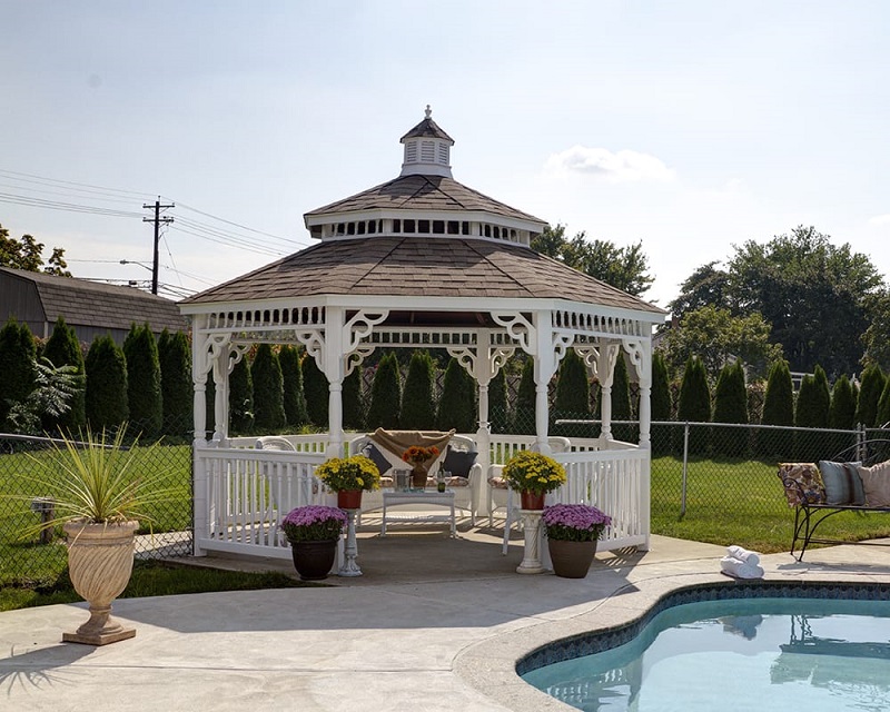 We're really sorry... We don't currently have that one in stock Please add your email and we'll notify you when it's back Email Your Name Your Email Your Friends Email Your Comments SendClose Window Gazebo Depot» Vinyl Gazebos Vinyl Octagon Pagoda Our Amish Built Vinyl Pagoda Gazebos come standard w/ a Composite,Floor,Architectural Asphalt Shingles w/ a T&G Pine Underlay,Vinyl Sleeved Rails,Posts,Corner Braces and a Complimentry Cupola.Pricing & SizePlease Select...10ft Vinyl 12ft Vinyl (+$1,000.00) 14ft Vinyl (+$3,500.00) 16ft Vinyl (+$5,300.00) 18ft Vinyl (+$6,700.00) 20ft Vinyl (+$8,500.00) Bench per sectionPlease Select...None 1 (+$96.80) 2 (+$193.60) 3 (+$290.40) 4 (+$387.20) 5 (+$484.00) 6 (+$580.80) 7 (+$677.60) Bench per sectionPlease Select...None 1 (+$108.90) 2 (+$217.80) 3 (+$326.70) 4 (+$435.60) 5 (+$544.50) 6 (+$653.40) 7 (+$762.30) Bench per sectionPlease Select...None 1 (+$121.00) 2 (+$242.00) 3 (+$363.00) 4 (+$484.00) 5 (+$605.00) 6 (+$726.00) 7 (+$847.00) Bench per sectionPlease Select...None 1 (+$145.20) 2 (+$290.40) 3 (+$435.60) 4 (+$580.80) 5 (+$726.00) 6 (+$871.20) 7 (+$1,016.40) Bench per sectionPlease Select...None 1 (+$169.40) 2 (+$338.80) 3 (+$508.20) 4 (+$677.60) 5 (+$847.00) 6 (+$1,016.40) 7 (+$1,185.80) Bench per sectionPlease Select...None 1 (+$211.75) 2 (+$423.50) 3 (+$635.25) 4 (+$847.00) 5 (+$1,058.75) 6 (+$1,270.50) 7 (+$1,482.25) Corner Braces VinylPlease Select...Colonial Standard Superior (+$550.00) Deluxe (+$550.00) Heritage (+$550.00) CupolaPlease Select...None Cupola (Free) ElectricalPlease Select...None Pre-Wired (+$400.00) Posts VinylPlease Select...Straight Aluminum ScreensPlease Select...None 10 ft (+$2,200.00) 12 ft (+$2,500.00) 14 ft (+$2,900.00) 16 ft (+$3,300.00) 18 ft (+$4,000.00) 20 ft (+$4,300.00) 4 Track Window Screen SystemsPlease Select...None 10 ft (+$4,400.00) 12 ft (+$5,200.00) 14 ft (+$5,800.00) 16ft (+$6,700.00) 18 ft (+$8,000.00) 20 ft (+$8,700.00) Railings - Bottom Straight or TurnedPlease Select...Straight (8 ft) Straight (10 ft) Straight (12 ft) Straight (14 ft) Straight (16 ft) Straight (18 ft) Straight (20 ft) Pine Spindles (8 ft) (+$360.00) Pine Spindles (10 ft) (+$430.00) Pine Spindles (12 ft) (+$510.00) Pine Spindles (14 ft) (+$570.00) Pine Spindles (16 ft) (+$690.00) Pine Spindles (18 ft) (+$760.00) Pine Spindles (20 ft) (+$860.00) Vinyl Spindles 8ft (+$320.00) Vinyl Spindles 10ft (+$390.00) Vinyl Spindles 12ft (+$460.00) Vinyl Spindles 14ft (+$520.00) Vinyl Spindles 16ft (+$610.00) Vinyl Spindles 18ft (+$700.00) Vinyl Spindles 20ft (+$770.00) Railings Vinyl Upper & Top PagodaPlease Select...10ft Straight 12ft Straight 14ft Straight 16ft Straight 18ft Straight 20ft Straight 10ft Turned (+$310.00) 12 ft Turned (+$350.00) 14ft Turned (+$400.00) 16ft Turned (+$460.00) 18ft Turned (+$530.00) 20ft Turned (+$580.00) Cedar Shake ShinglesPlease Select...None Cedar Shingles (Upcharge Price) Asphalt ShinglesPlease Select...None Black Charcoal Gray Harvard Slate Aged Redwood Dual Gray Earthtone Cedar Dual Brown Monaco Red Vintage Green Weatherwood Driftwood National Blue Metal RoofPlease Select...None 10ft (+$1,800.00) 12 ft (+$2,100.00) 14 ft (+$2,900.00) 16 ft (+$3,500.00) 18ft (+$4,300.00) 20 ft (+$5,100.00) Vinyl Composite FloorPlease Select...Slate Gray Brownstone No Floor Pine Wood Floor Prices From : $10,500.00 « Previous | Next »